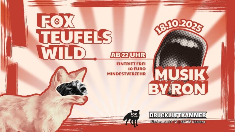 Dann kommt zur Foxteufelswild (ehemals im Fox – jetzt in der Druckluftkammer) – eine der geilsten Partys aus Koblenz!